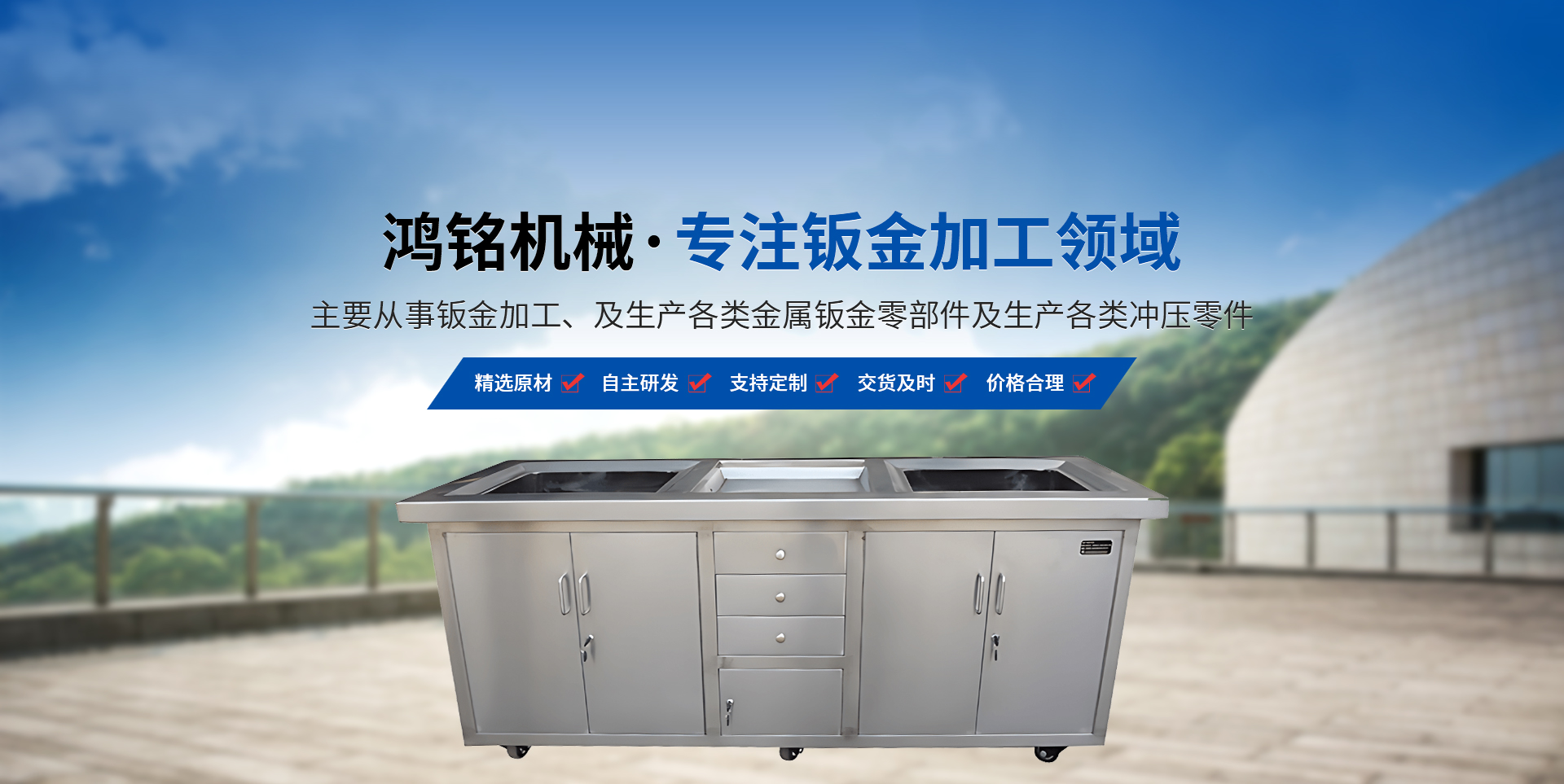 新鄉市鴻銘機械有限公司成立于2009年,占地面積8000平方米,位于新鄉市衛濱區南環路,地理位置優越,交通便利。 本公司設備為德國進口激光切割機,揚力400T折彎機,揚力沖床等設備。主要從事鈑金加工、及生產各類金屬鈑金零部件及生產各類沖壓零件?! 」鹃L期與國內外大型企業合作深受新老客戶的贊賞,同時公司對外承接各類鈑金加工業務(標準鈑金件與非標鈑金件),先后為多家知名企業配套加工鈑金,公司也可根據客戶的需要代為設計,尤其對精度、外觀要求高的產品有獨到的生產經驗。 我們本著"科學管理、全員參與、持續改進、滿足客戶"的質量方針來生產我們的每一件產品。為了在市場競爭中立于不敗之地,公司以質量求生存,以設備保精度。歡迎新老客戶到本公司實地考察。  本企業建立以來,以"質量保證,信譽保證,交貨及時,價格合理"為宗旨,贏得了客戶的一致好評。面對市場經濟的挑戰,公司將以產品和服務參與市場競爭,為廣大客戶提供鈑金加工平臺。